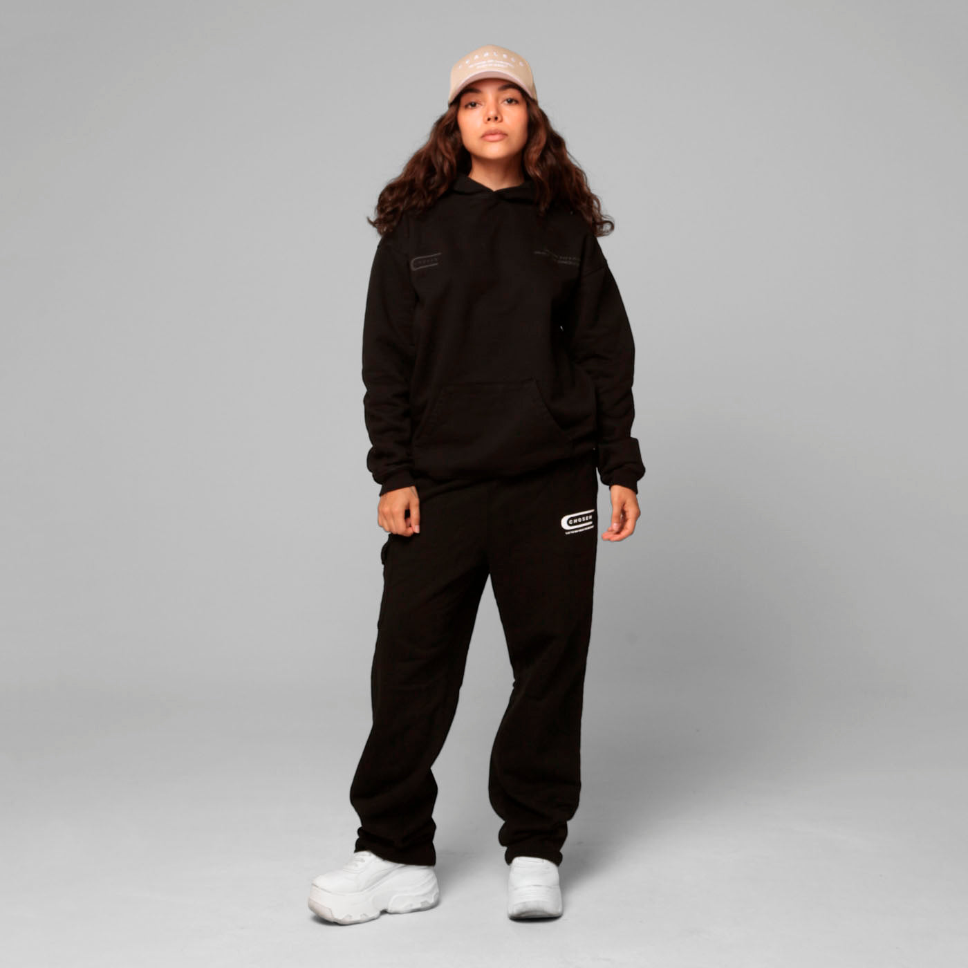 Made from 100% cotton heavyweight burda fabric (375 grams), featuring 2x2 ribbing on the cuffs and waistband. It has a front kangaroo pocket. It has a high-density print on the front and the back has a high-density print and plastisol. This product has a regular fit cut with a dropped shoulder.